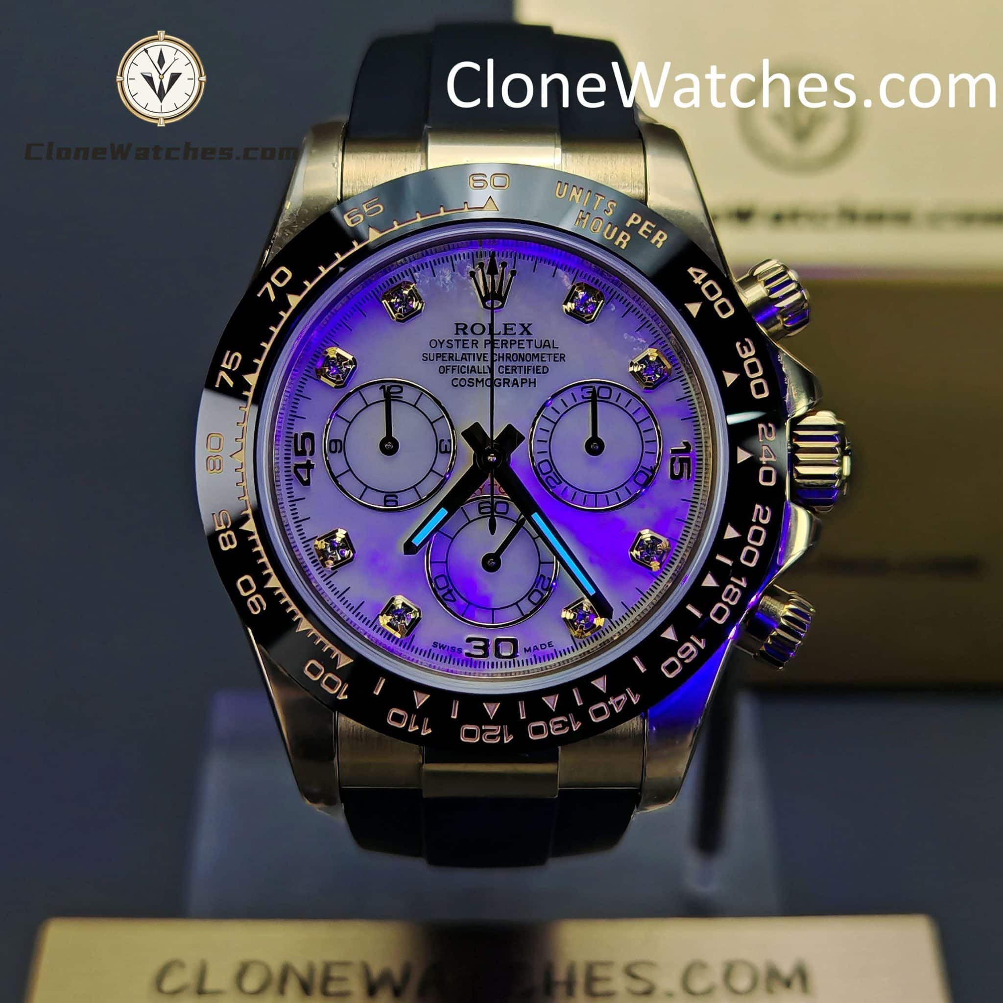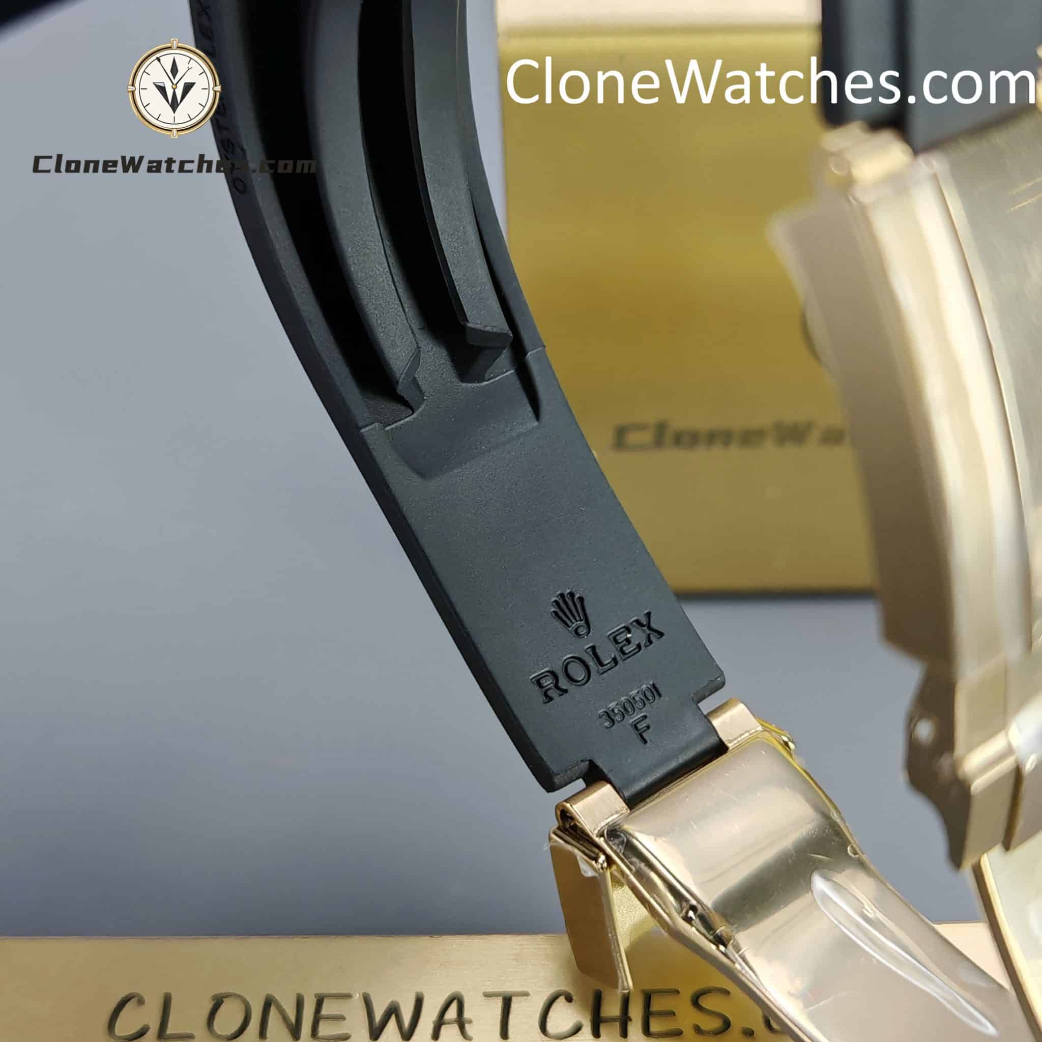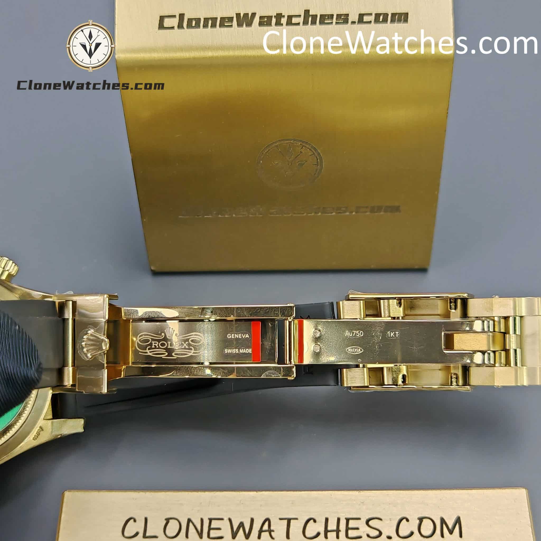 FUNCTION This Rolex  Super Clone functions just like the original. Central hour and minute hands with small seconds at 6 o’clock. Timekeeping via central seconds hand, 30-minute counter at 3 o’clock and 12-hour counter at 9 o’clock. Stop seconds function for precise time setting.