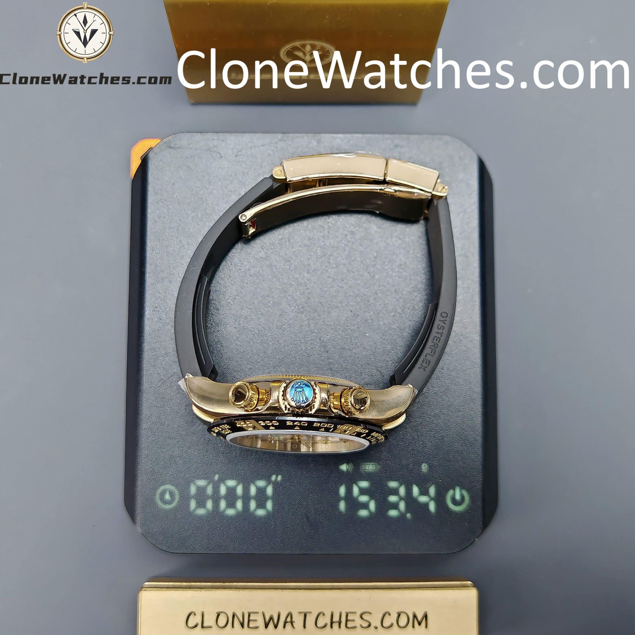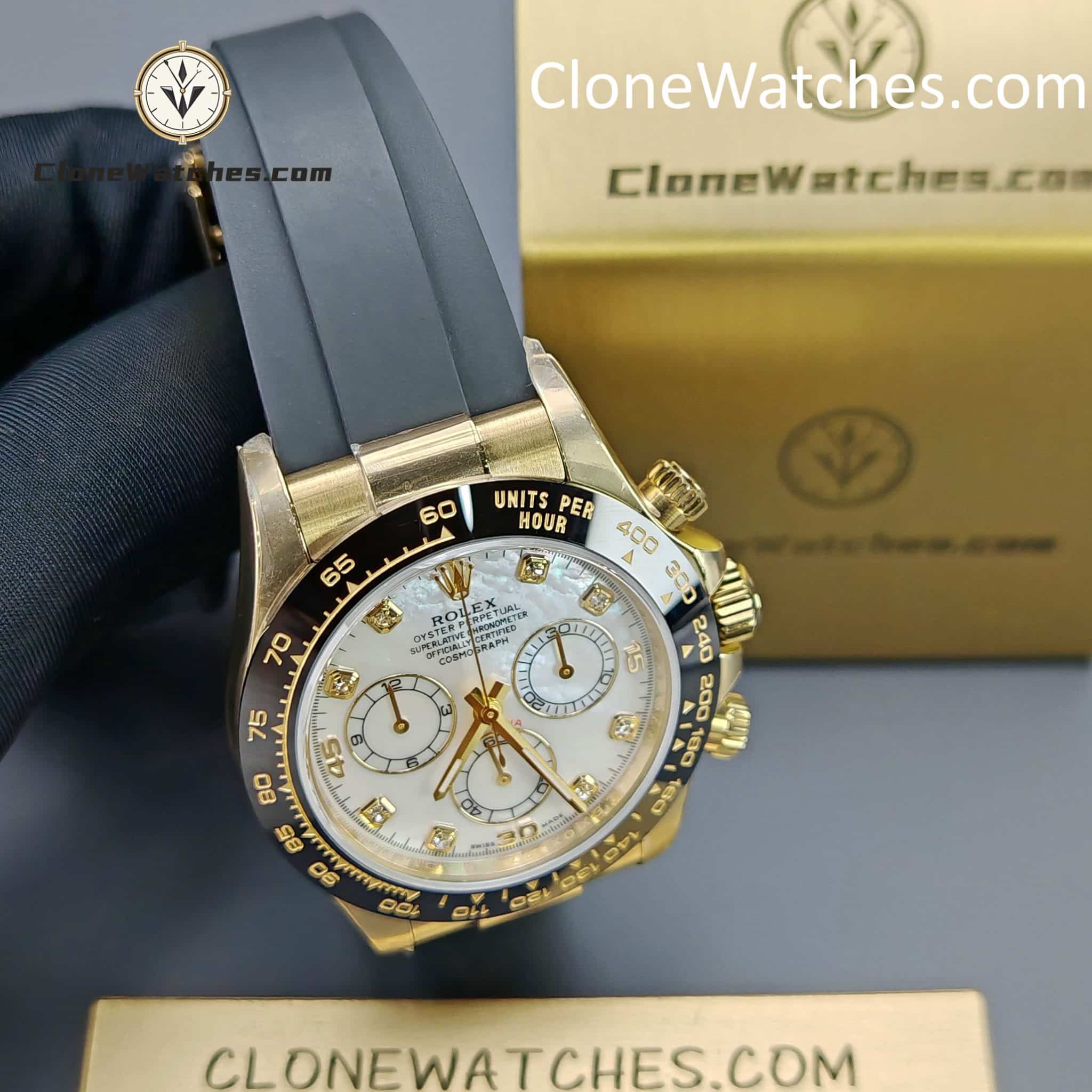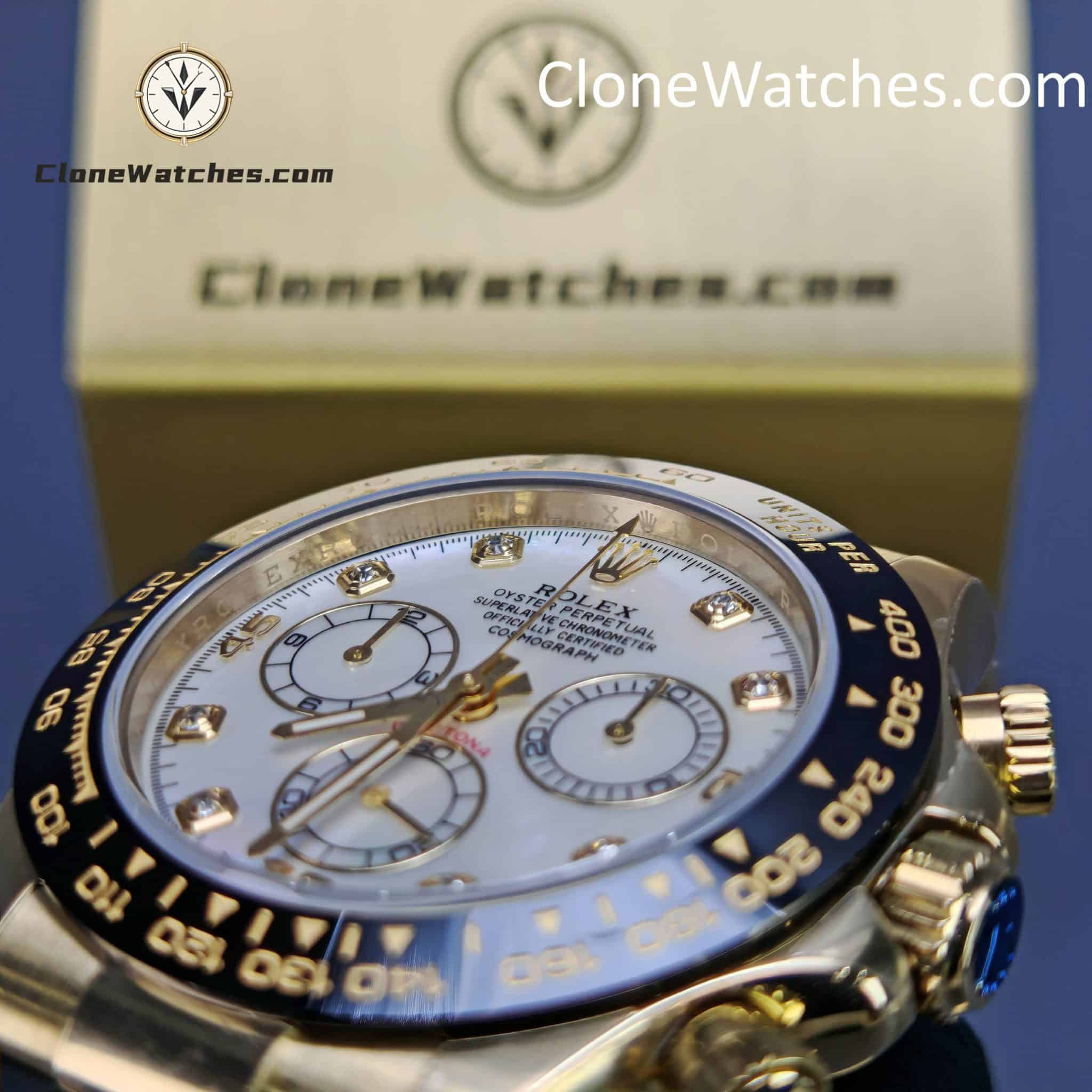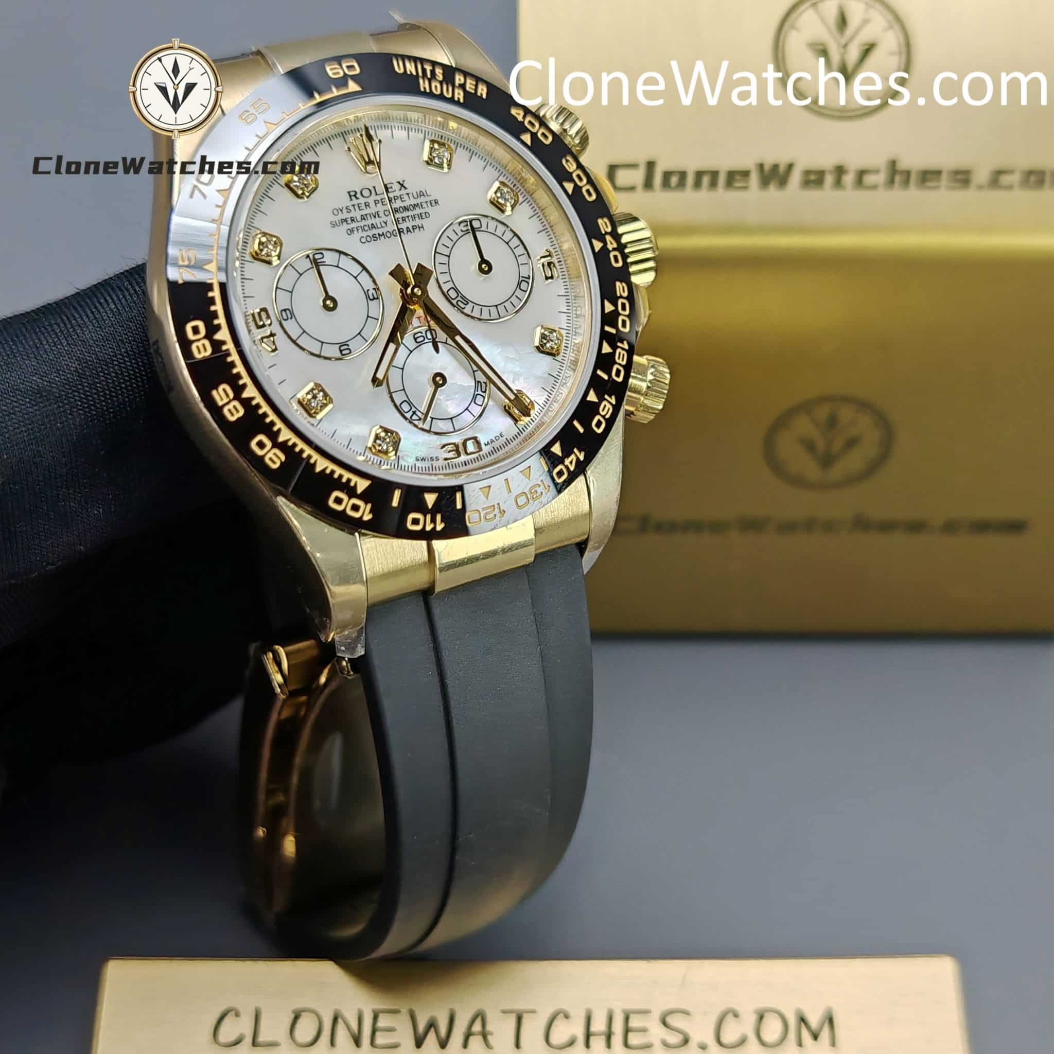 FUNCTION This Rolex  Super Clone functions just like the original. Central hour and minute hands with small seconds at 6 o’clock. Timekeeping via central seconds hand, 30-minute counter at 3 o’clock and 12-hour counter at 9 o’clock. Stop seconds function for precise time setting.