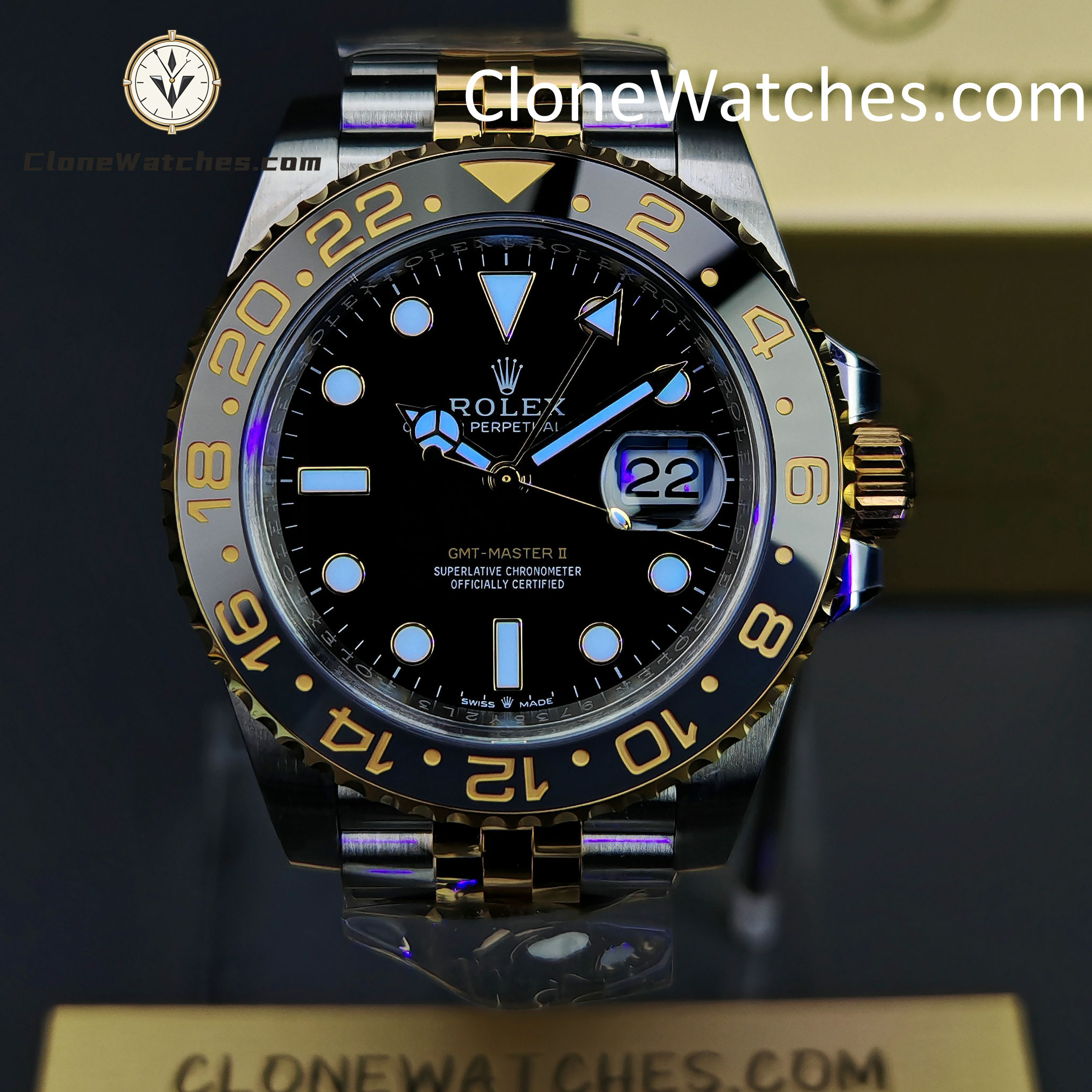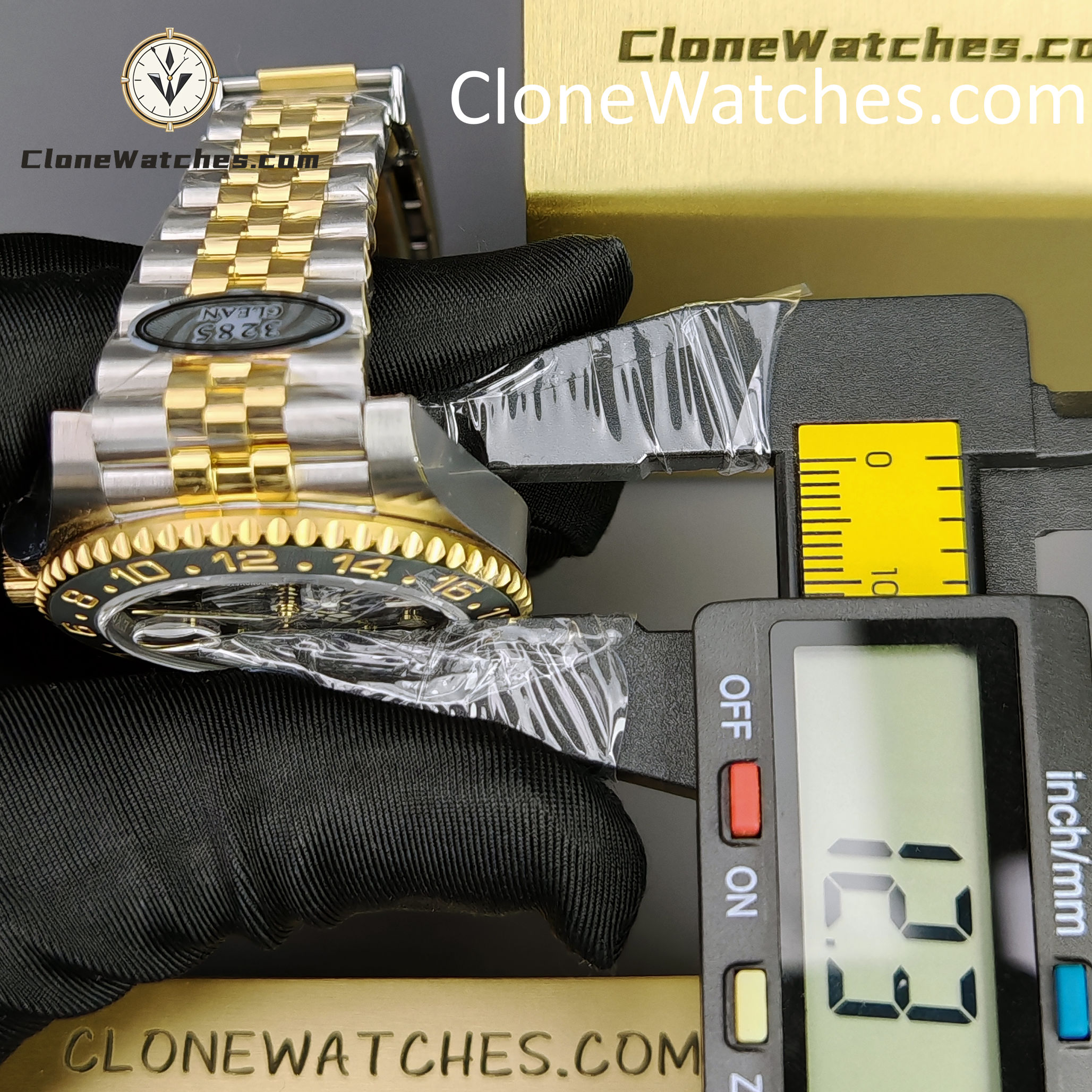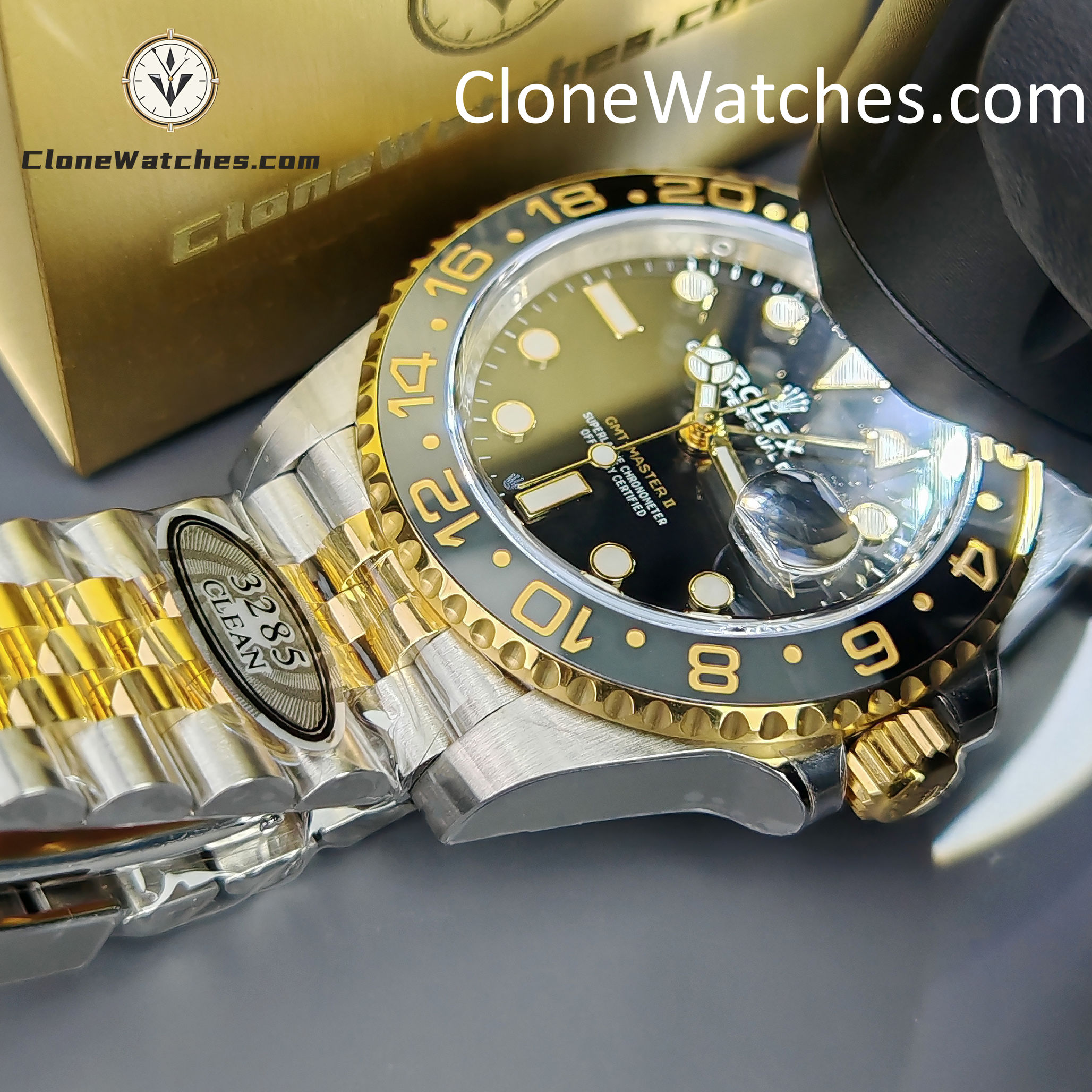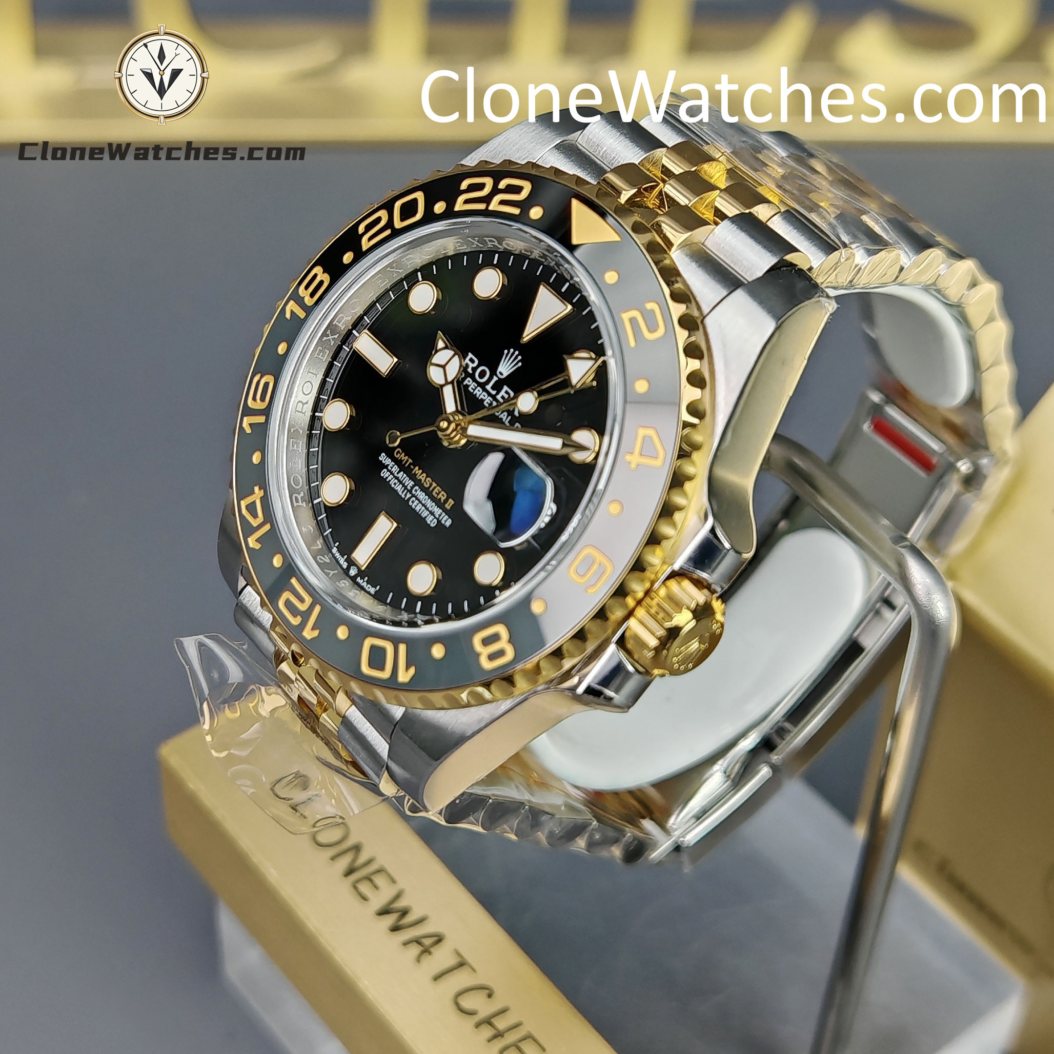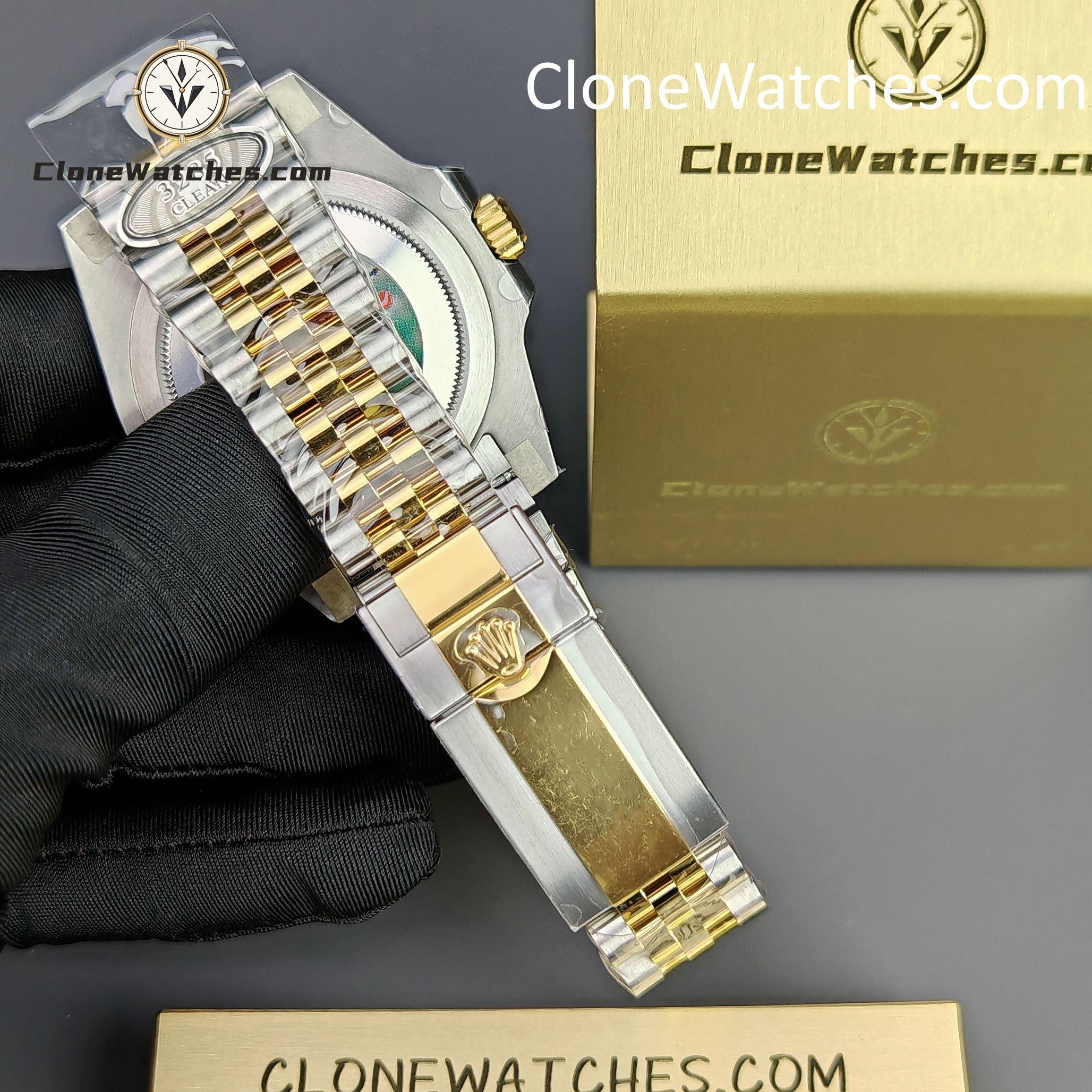 - Black & Grey Bezel: Correct “GRNR” colorway with 18k Yellow Gold plated numerals.