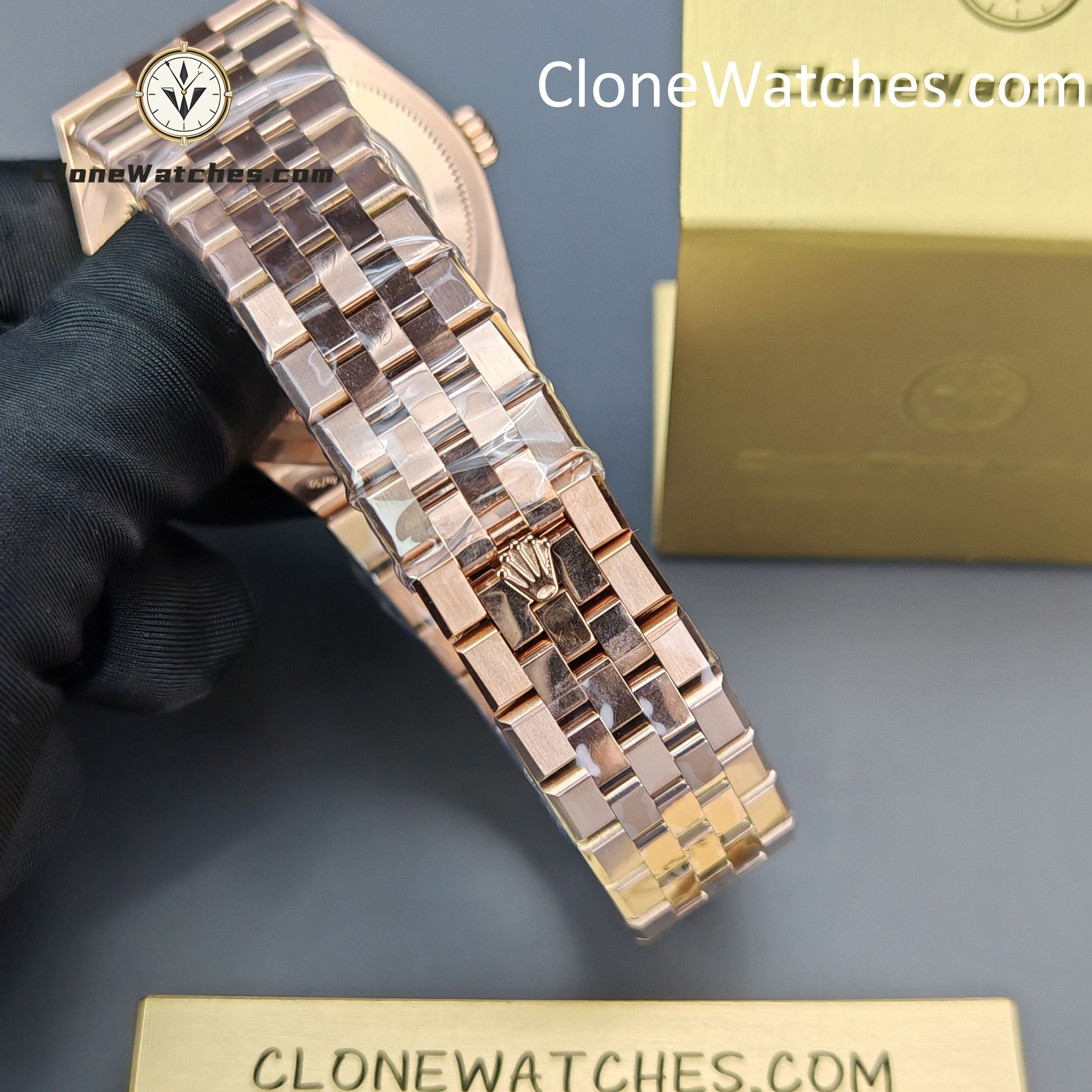 Bracelet: Jubilee 5-link 904L bracelet with rose gold finish