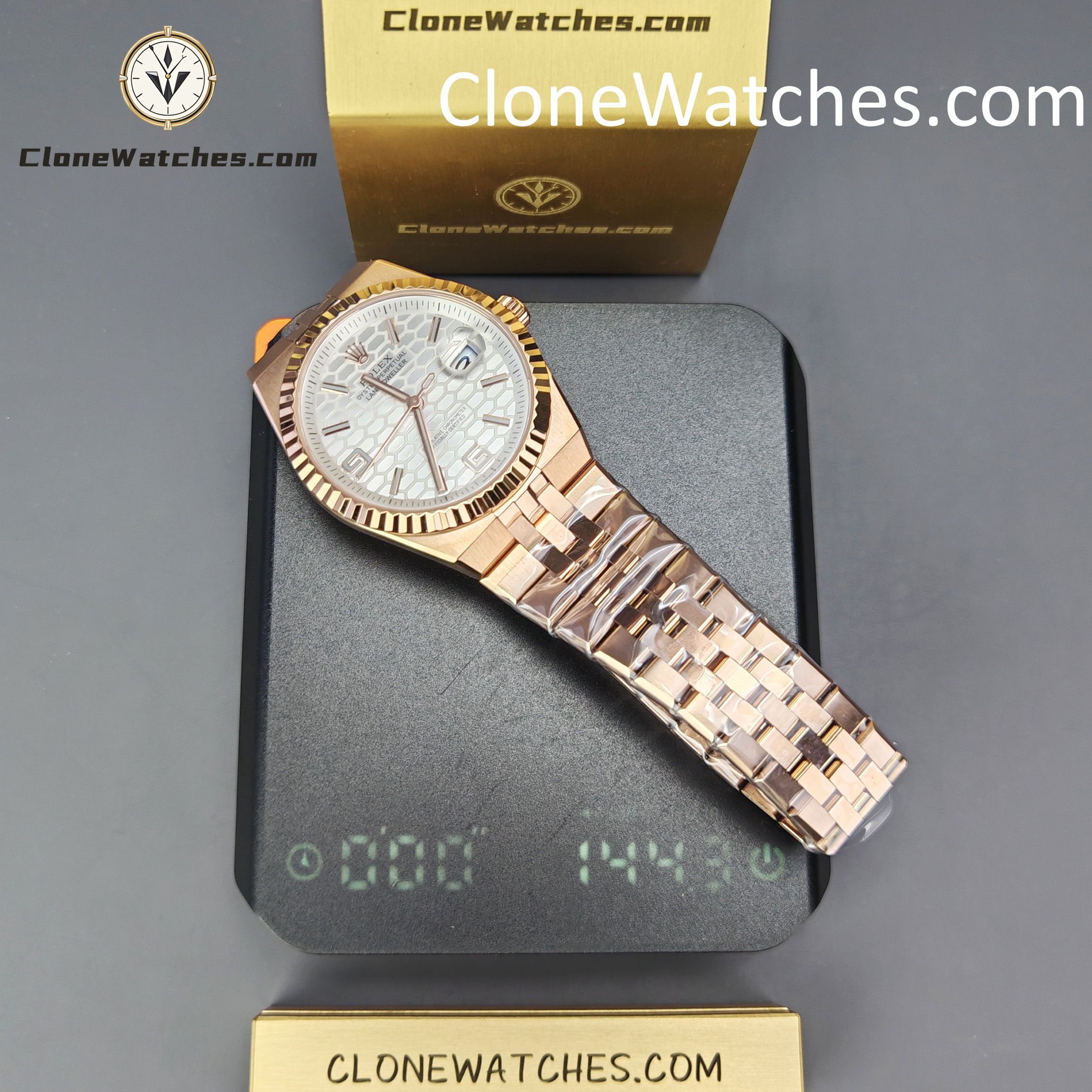 Crafted from solid 904L stainless steel with vacuum-plated rose gold, and powered by a fully functional clone of the Rolex 3255 movement, this test model represents the factory’s early-stage structural and aesthetic testing phase—making it a unique collector’s opportunity.