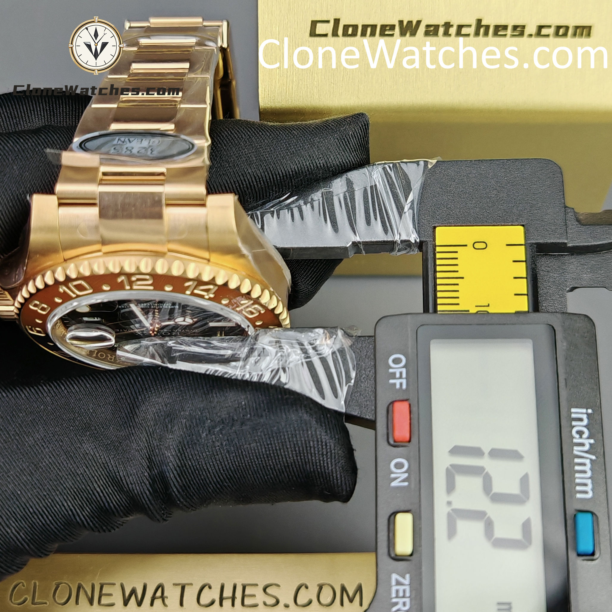 A: The primary difference is the weight (Physical mass). The genuine watch is solid gold and weighs over 200g, while this replica is 148g. Visually, however, they are virtually indistinguishable.