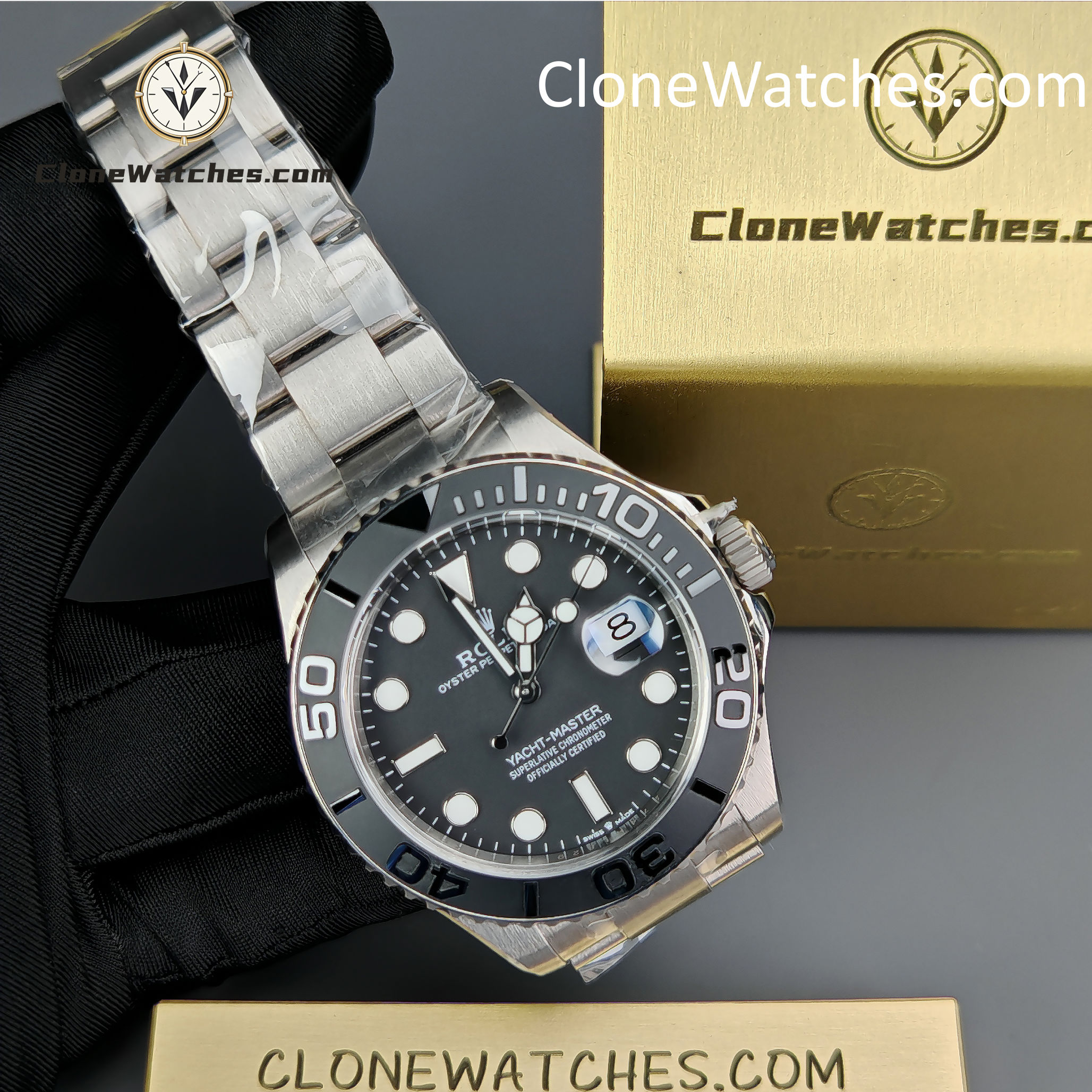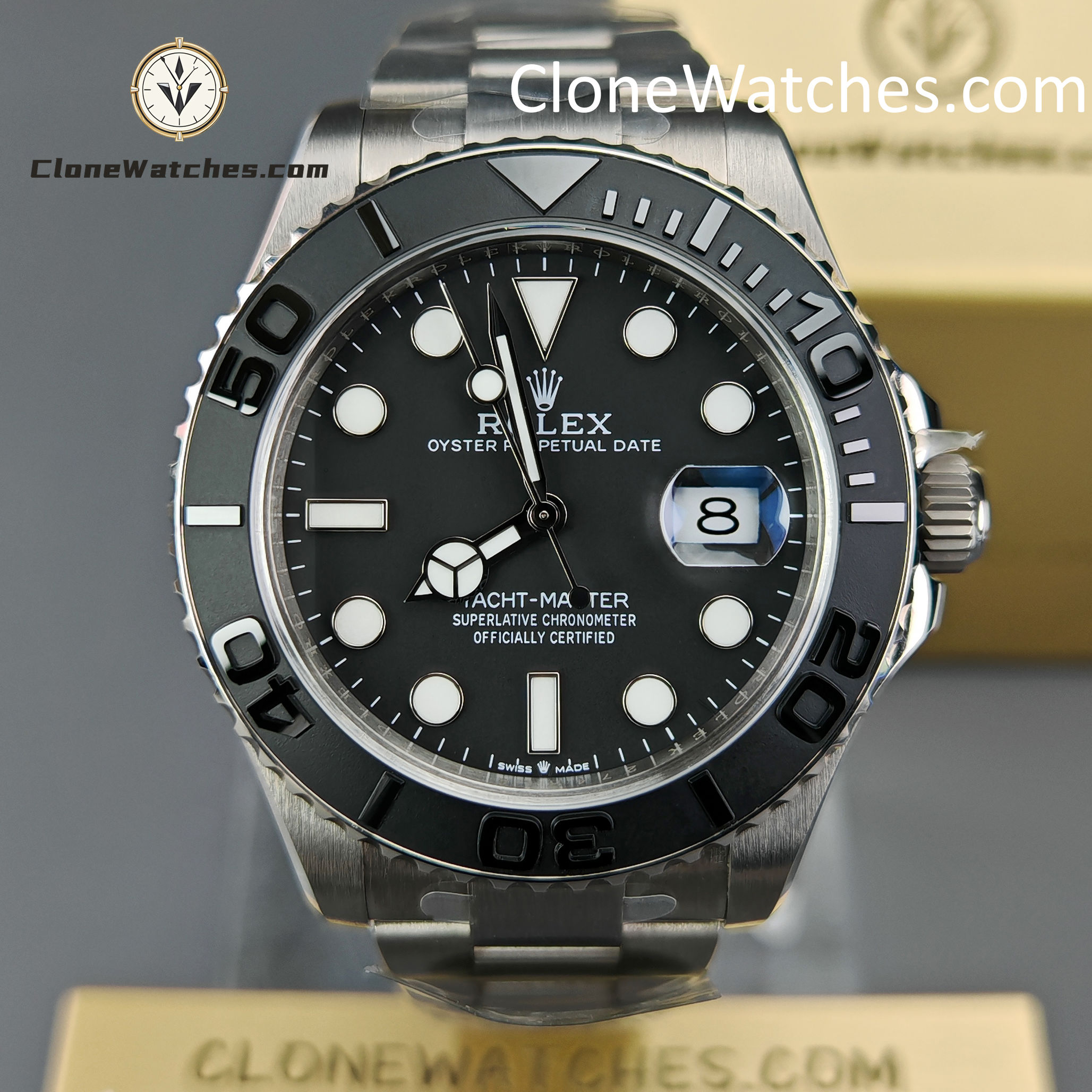 Bezel/Dial/Hands: Ultra-sharp ceramic bezel, precise dial printing and refined hands – consistent with Clean Factory’s Yacht-Master series