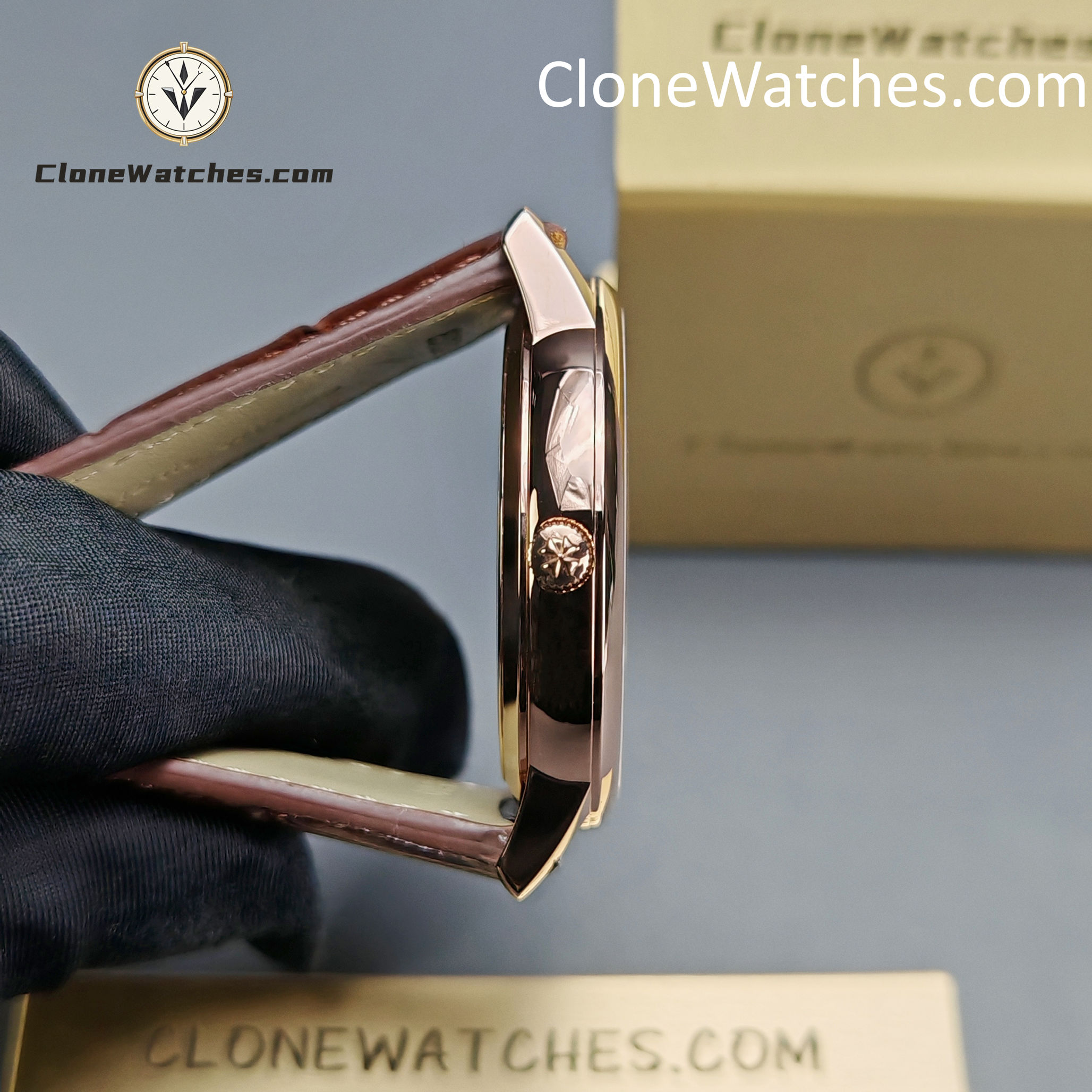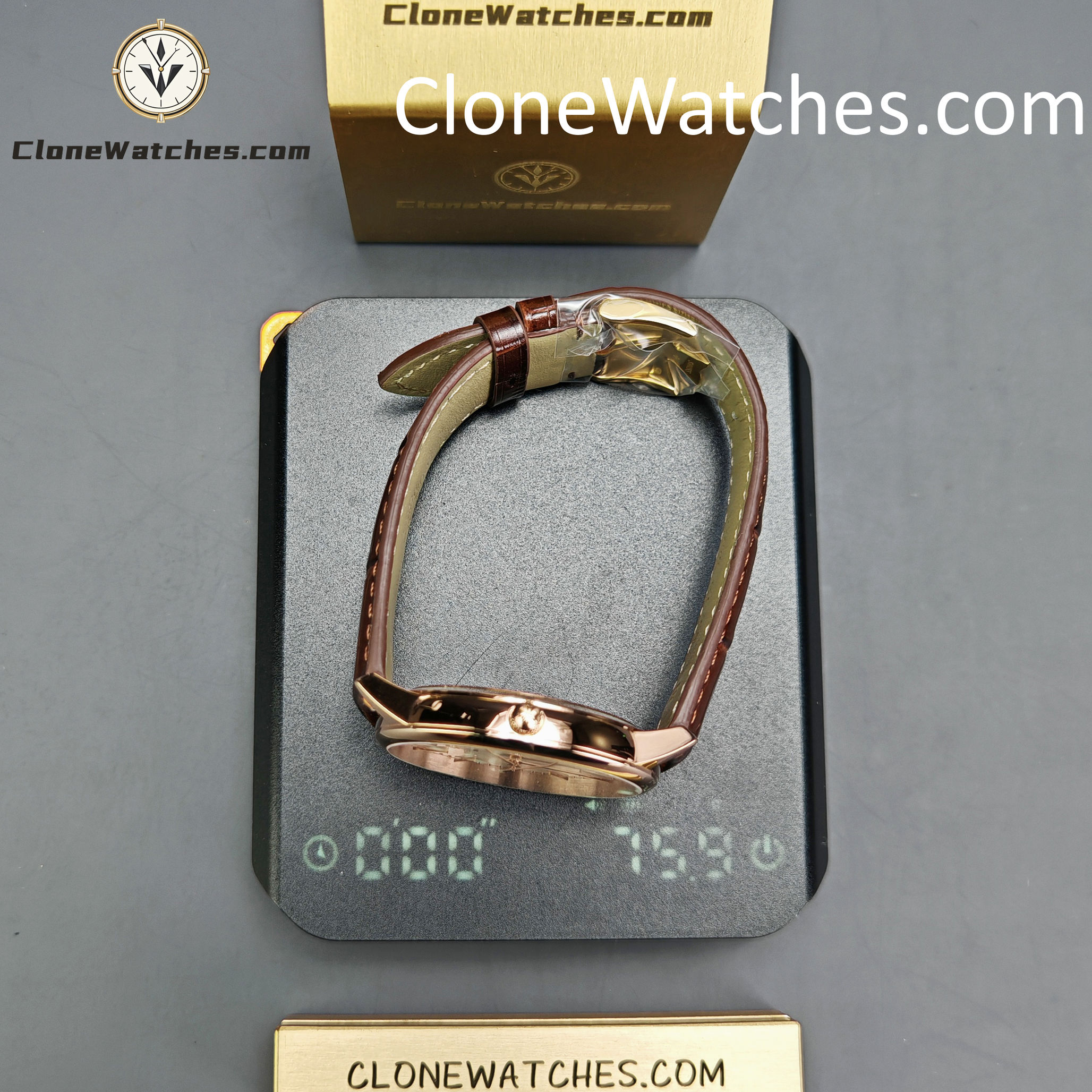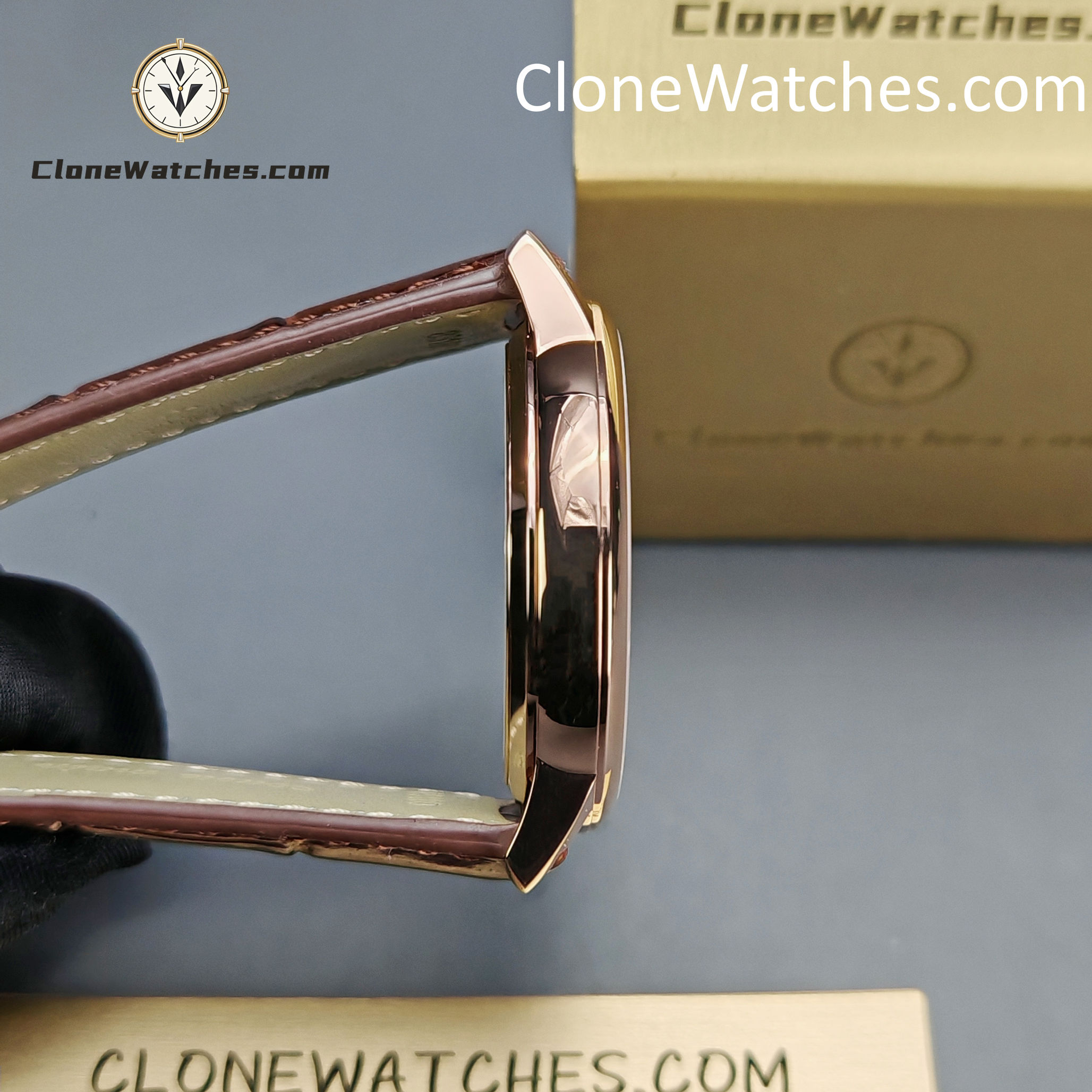[Case] Size 40MMX9MM, perfectly round case, with micro-orbital lug design, making it fit the wearer’s wrist better. Each finished case must undergo strict quality control to restore the unique texture of the authentic product. [Movement] Clone Watches uses the self-produced 2450 movement. From the splint to the steel wheel and other parts, they are all carefully decorated by the watchmaker, and the automatic rotor is plated with 18k rose gold, presenting the original exquisite craftsmanship to the maximum extent. [Watch mirror] The front and back sapphire glass mirrors of Clone Watches are both anti-dizzy coated. [Strap] Double-layer Italian calfskin, with Maltese cross pin buckle.