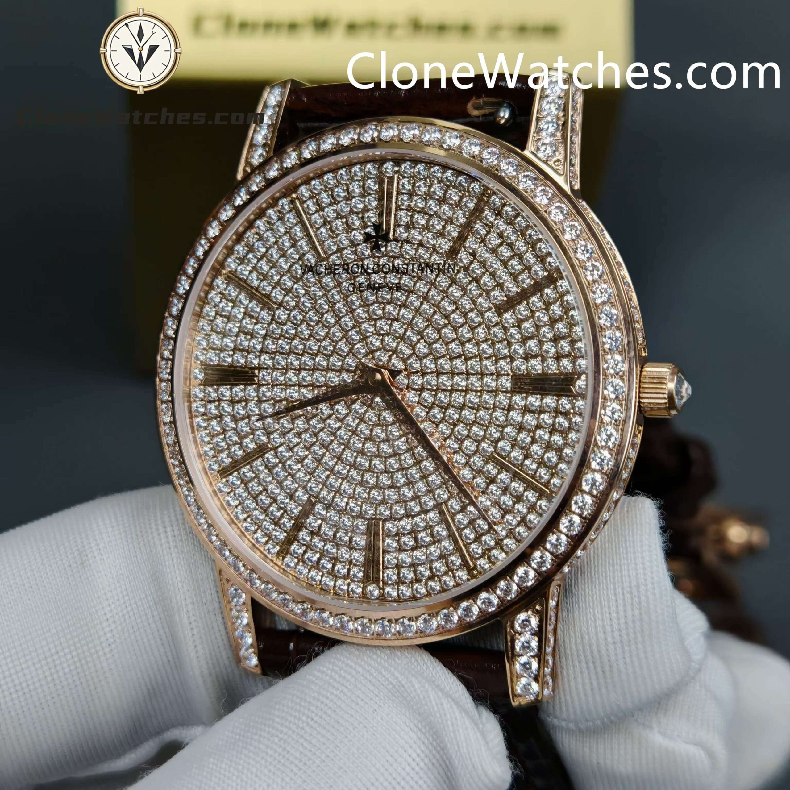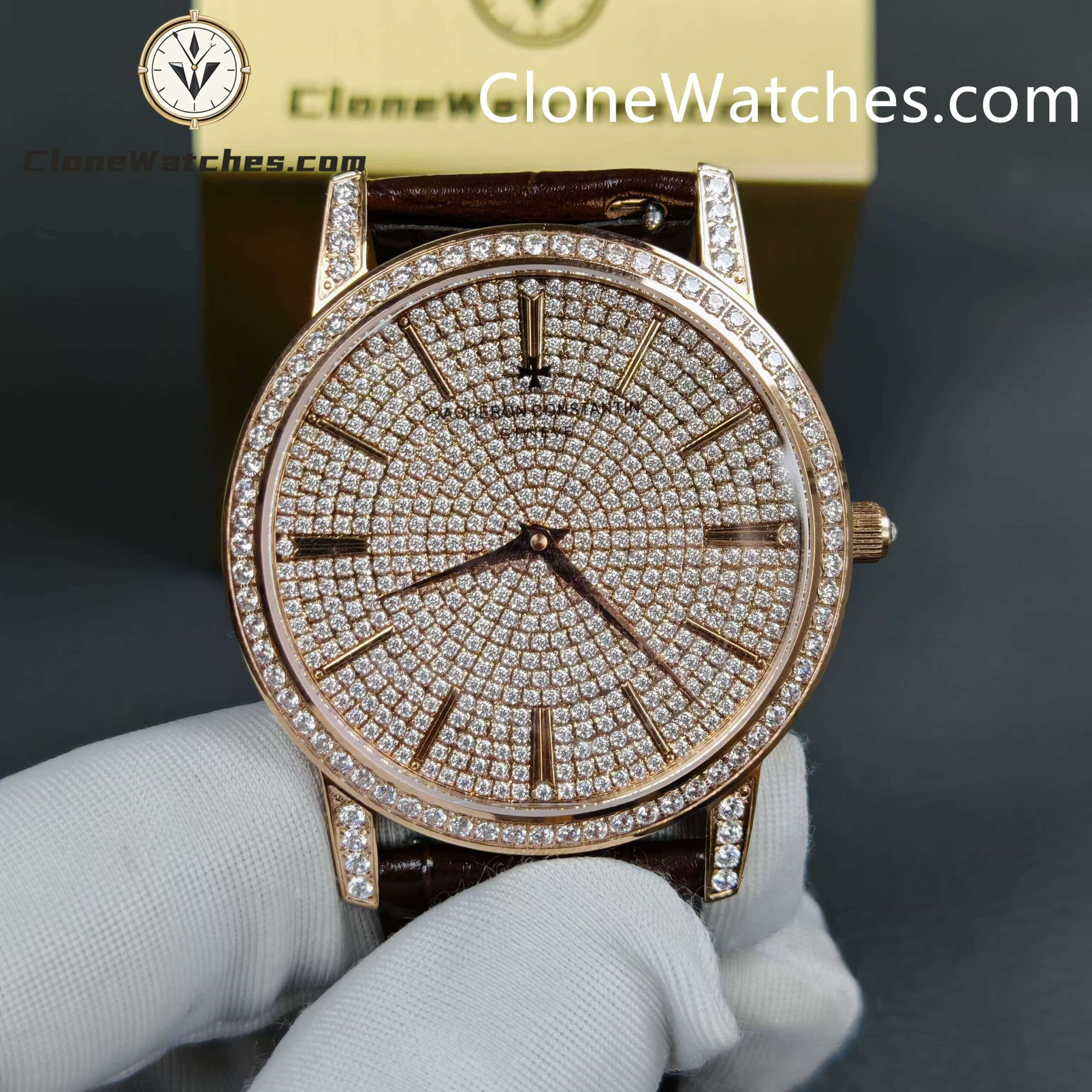 Vacheron Constantin Super Clone Watches 1:1 Patrimony Rose Gold Diamond Dial